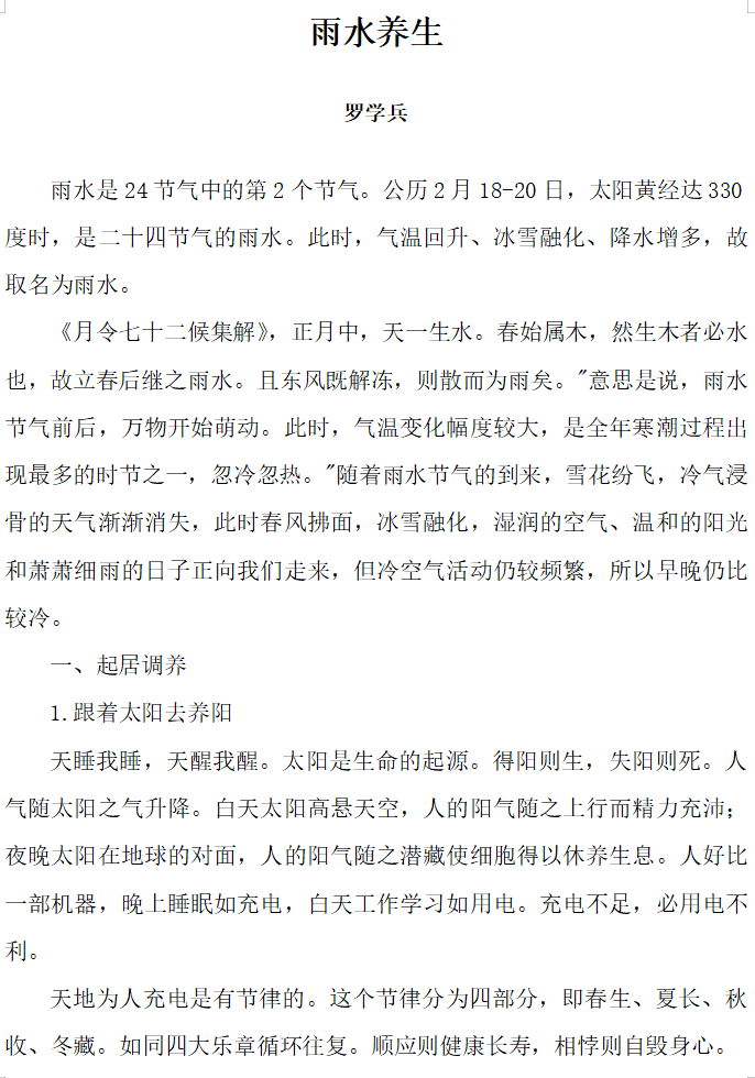 雨水是24节气中的第2个节气。公历2月18-20日,太阳黄经达330度时,是二十四节气的雨水。此时,气温回升、冰雪融化、降水增多,故取名为雨水。